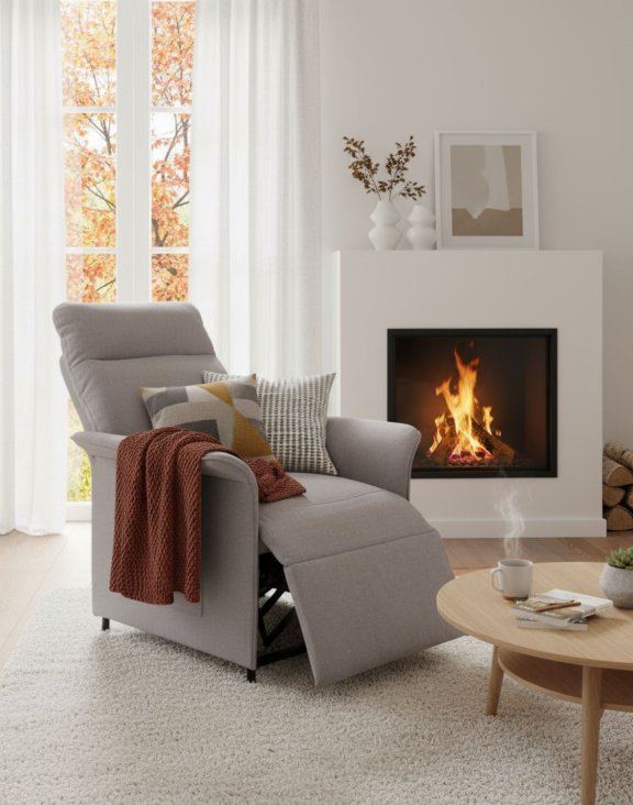 Křeslo Torro s funkcí elektrického polohování značky Snapty poskytuje relaxaci po celém dni. Jeho elegantní šedé provedení se dokonale hodí do různých interiérů a spojuje v sobě komfort a styl.