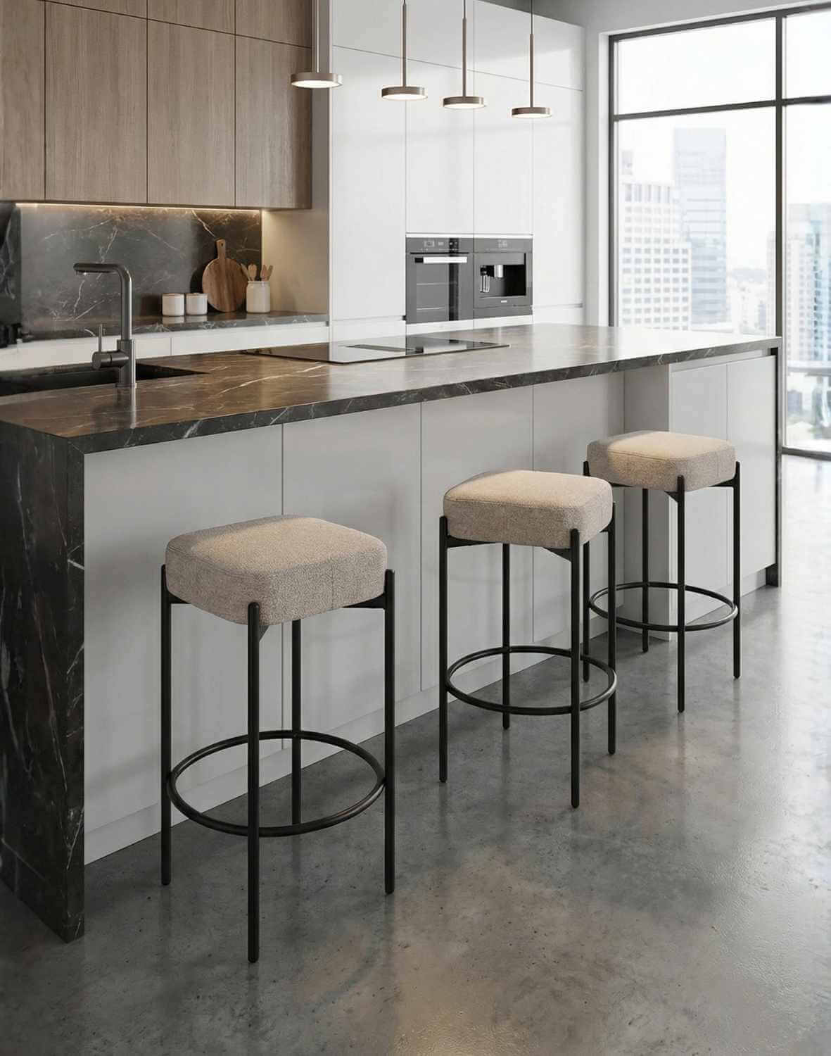 Silné, měkké sedadlo zajišťuje pohodlí i při delším sezení – ideální například k barovému pultu nebo kuchyňskému ostrůvku.