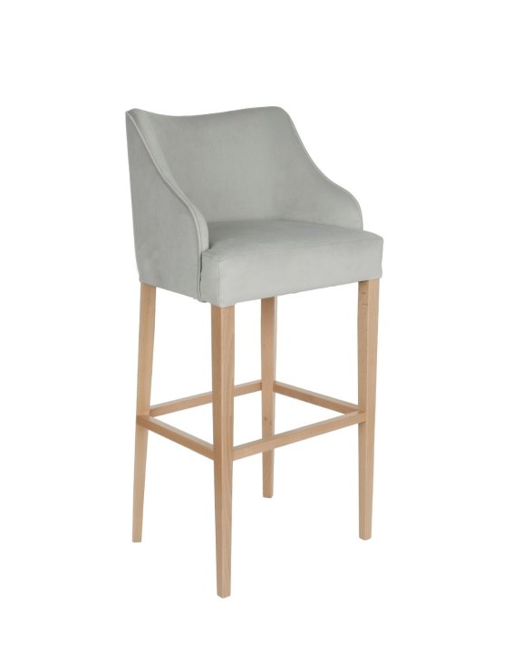 Nadčasová barová židle Bari – s volitenou výškou do jídelny, vyrobená z vysoce kvalitního bukového dřeva a čalouněná látkou dle vašeho výběru.