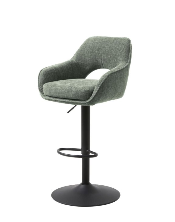Barová židle Cowley značky Unique je elegantní a funkční kus nábytku, čalouněný látkou Top 352 v zelené barvě, která mu dodává strukturu a hloubku.
