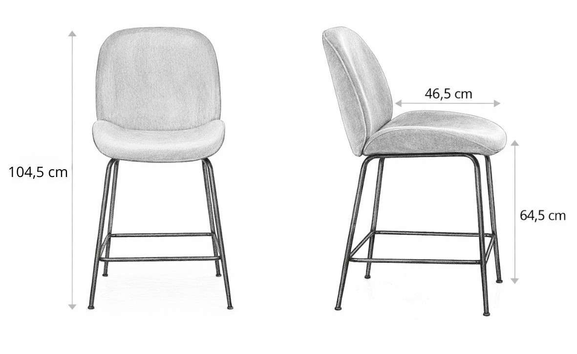 Barová židle je čalouněná na dotek příjemnou sametovou látkou v šedé barvě.