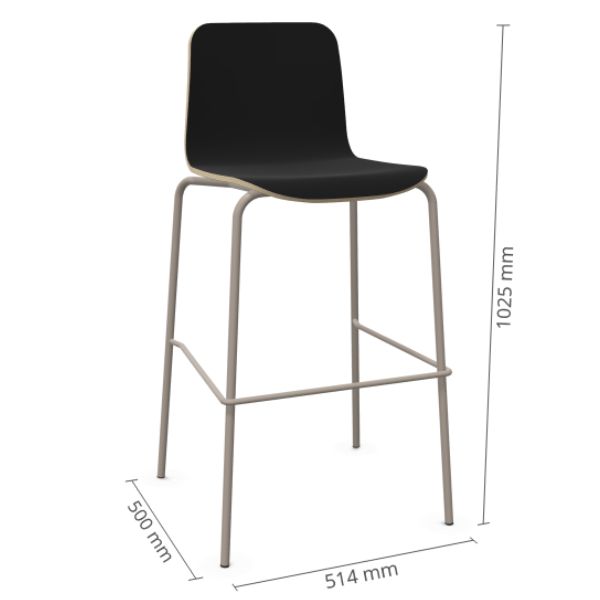 - Stabilní konstrukce: Čtyři nohy z ocelové trubky Ø 18 × 2 mm s opěrkou na nohy z prutu Ø 12 mm zajišťují pevnost a stabilitu.