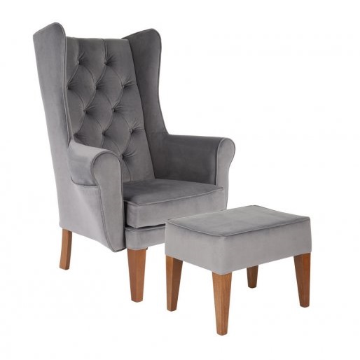 Pohodlný set televizní křeslo ušák Chesterfield s taburetem