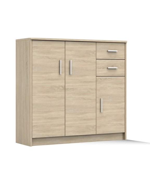 2 uzavíratelné skříňky: dvoudveřová se třemi policemi – ideální pro větší množství obuvi, jednodveřová s jednou policí – perfektní na dětské boty, polobotky nebo pantofle.