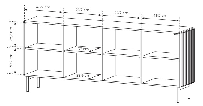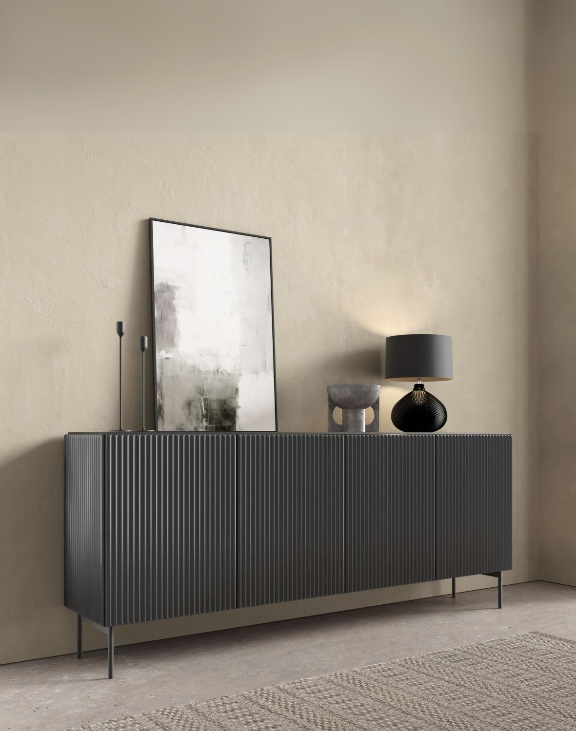 Černá komoda Muti A je elegantní a funkční nábytek s ryhovanými čely a systémem push-to-open. Skvěle se hodí do obývacího pokoje, jídelny i ložnice. Objednejte ještě dnes s dopravou zdarma!