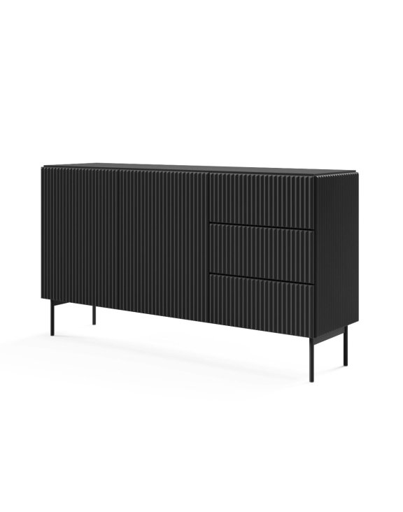 Černá komoda Muti A je elegantní a funkční nábytek s ryhovanými čely a systémem push-to-open. Skvěle se hodí do obývacího pokoje, jídelny i ložnice. Objednejte ještě dnes s dopravou zdarma!
