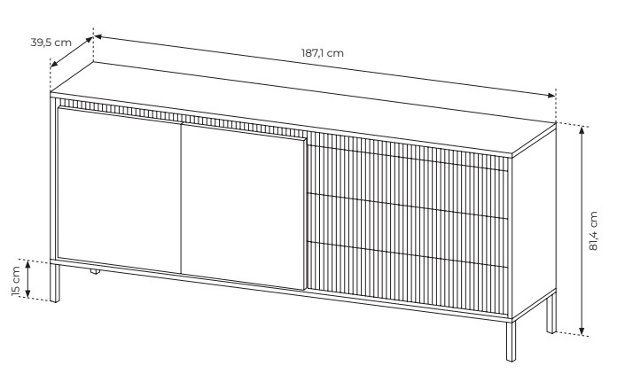 Černá komoda Senso 153 2D3S s ryhovanými zásuvkami a prostornými skříňkami je elegantní a praktické řešení do každého obývacího pokoje – objednejte online a proměňte svůj interiér!