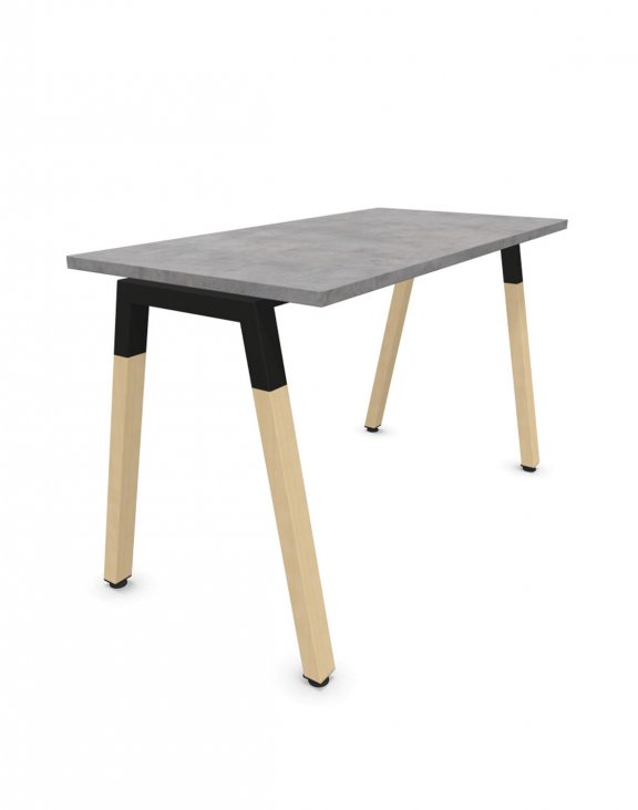 Stůl je na 4 nohách ve tvaru A. Horní část rámu je vyrobena z ocelového profilu, zatímco spodní - z masivního bukového dřeva.