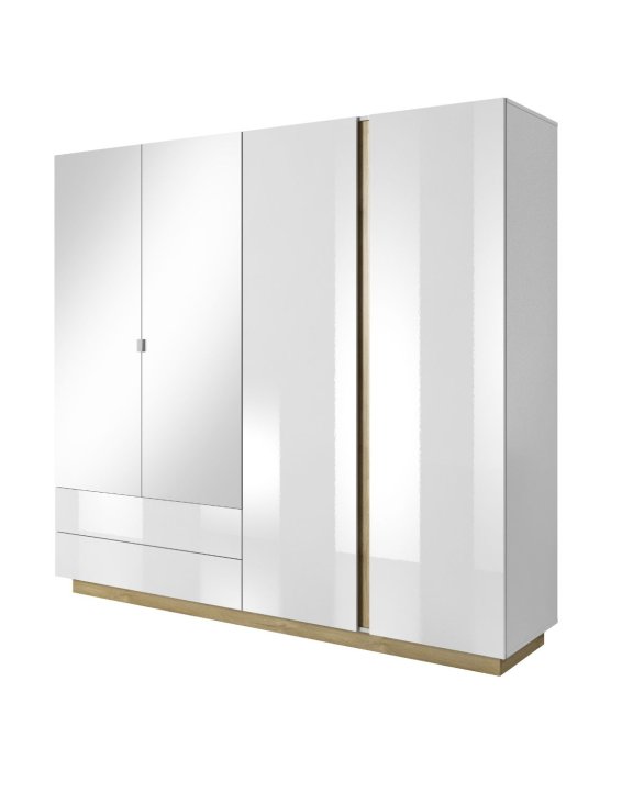 Šatní skříň se zrcadlem Arco L 220, bílý lesk