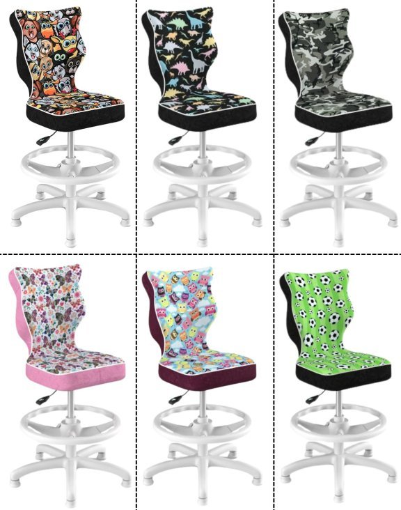 Židle Petit s podnožkou je ergonomická otočná židle navržená speciálně pro děti školního věku.