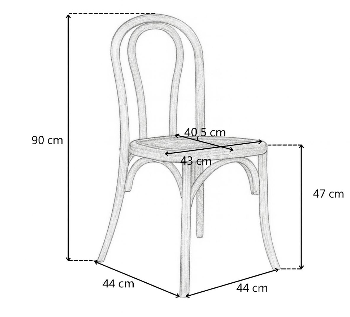 Robustní konstrukce z bukového dřeva zaručuje dlouhou životnost a opěradlo ve tvaru ručně ohýbaného oblouku dodává židli jedinečný charakter.
