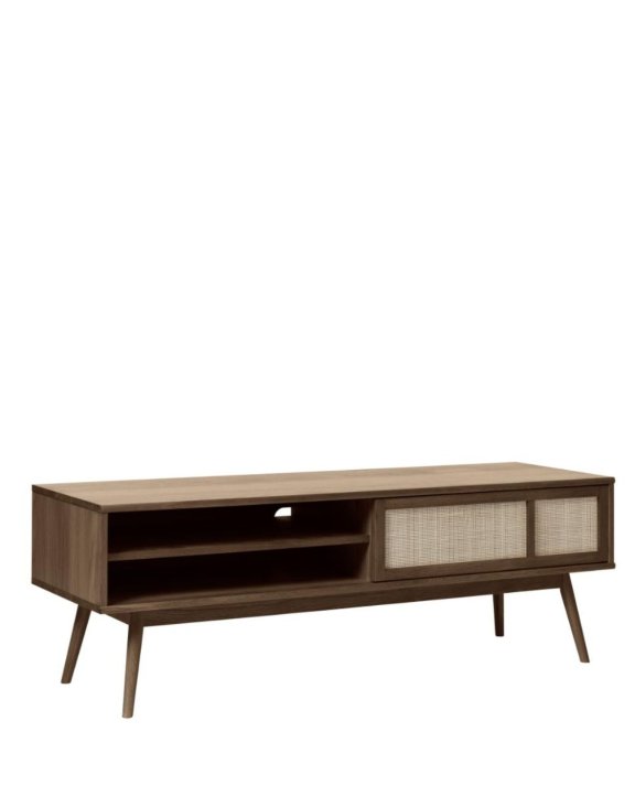 Dřevěná TV skříňka Barrali značky Unique je elegantní a moderní kus nábytku, který spojuje přirozený půvab dubu s jemným akcentem ratanu.