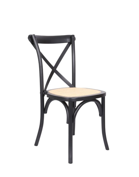 Pevná konstrukce zajišťuje dlouhou životnost, zatímco charakteristické opěradlo z dřevěných lamel ve tvaru písmene „X“ dodává židli jedinečný charakter a jemnou eleganci.