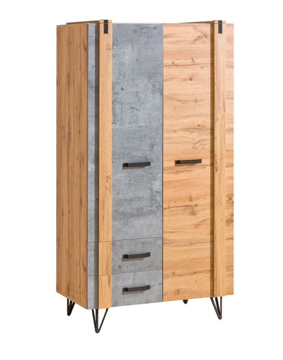 Šatní skříň Lofter LO1 o šířce 90 cm představuje dokonalé spojení moderního designu s industriálním charakterem, které vnáší do interiéru jedinečnou atmosféru loftové elegance.