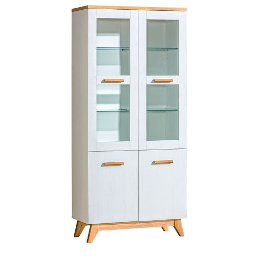 Dvoudveřová vitrína Sven SV3 zaujme na první pohled. Model je vyhotoven v barevném provedení borovice andersen, které je doplněno o výrazné doplňky v odstínu dub nash, jež dodávají nábytku osobitý charakter a teplo.