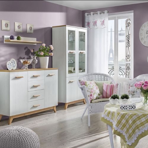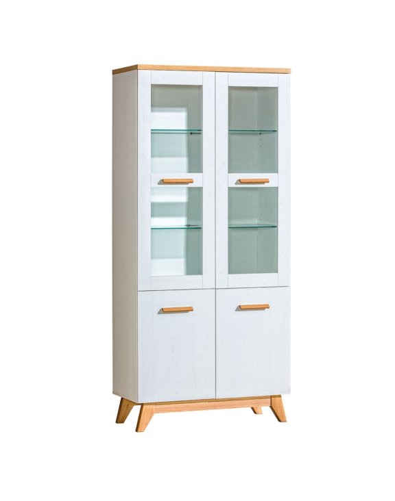 Pod skandinávským designem se skrývá promyšlená funkčnost. Za prosklenými dvířky se nacházejí tři skleněné police, na které můžete umístit dekorace či předměty, které chcete vystavit. Za plnými dvířky lze naopak uložit věci, které mají zůstat skryté.