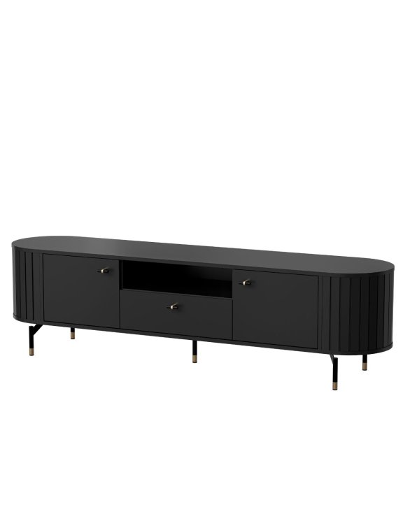 TV stolek ZANTE ZA5 se zaoblenými tvary a drážkovanými prvky kombinuje eleganci s moderním vzhledem.