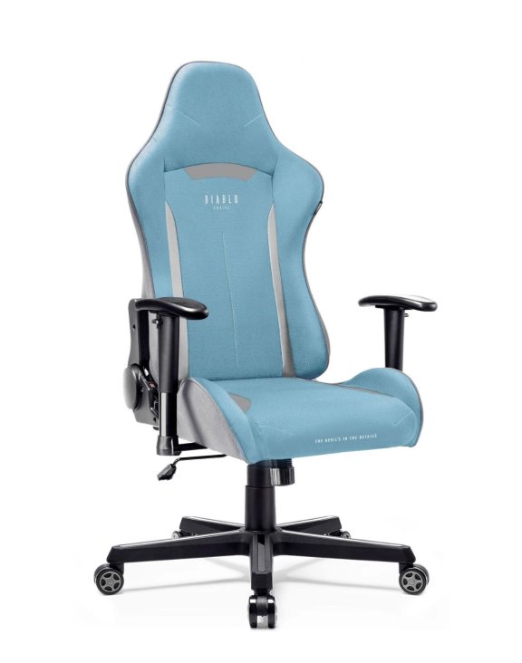 Herní křeslo Diablo X-Starter v modré barvě s šedými detaily je modelem pro ty, kterým záleží na maximálním pohodlí při hře a zároveň preferují světlejší barevné provedení.