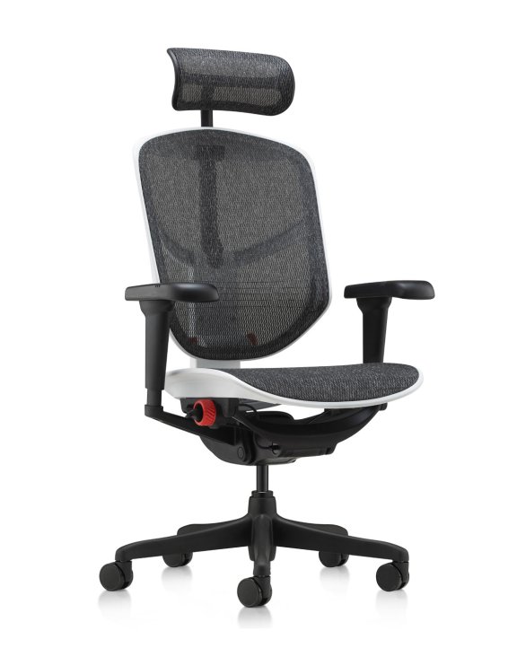 Opěrka hlavy, opěradlo a sedadlo jsou čalouněny inovativní černou síťovinou s příměsí bílé nitě.