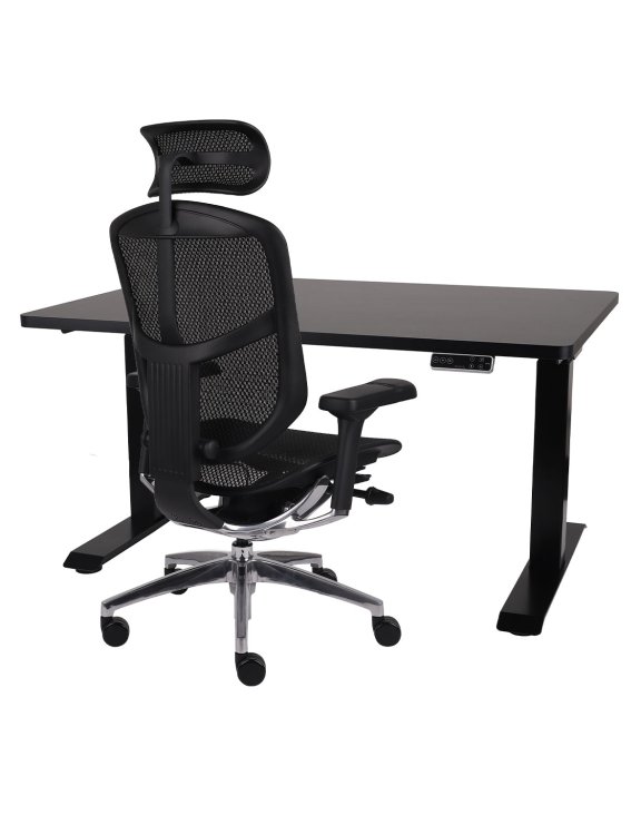 Sestava, která se skládá z unikátního křesla Enjoy BS Black a funkčního nastavitelného stolu Alto 101 Black, nabízí vynikající ergonomii, moderní design a výjimečné zpracování.