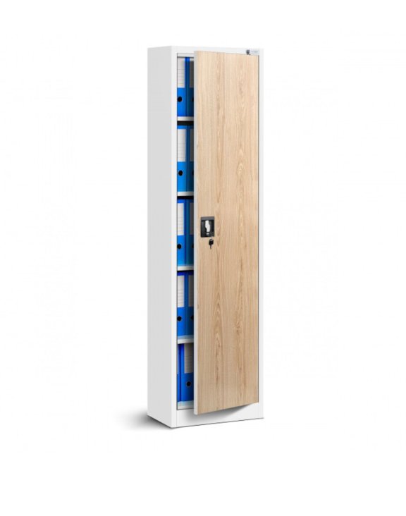 Jednodílná kovová skříň Alex, rozměry 45x185 cm, bílá - dub sonoma, je kus nábytku s mnoha možnostmi, ktera se uplatní všude tam, kde je potřeba pevný, stabilní a kompaktní kus nábytku.