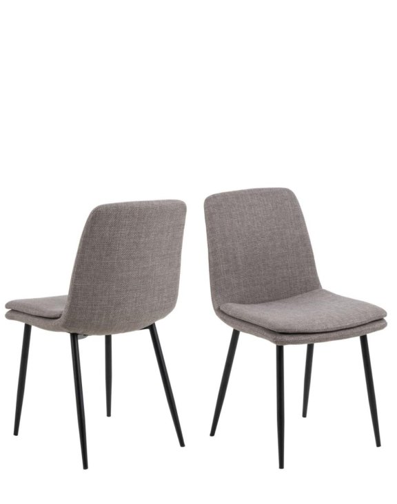 Jídelní židle Becca značky Actona je elegantní jídelní židle čalouněná šedou látkou s černými kovovými nohami s práškovým nástřikem.