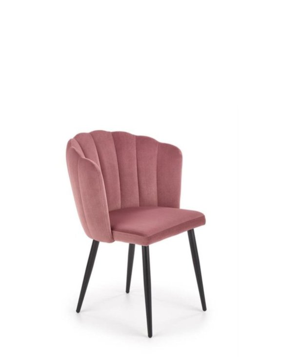 Čalounění židle je vyrobeno z odolné a a na dotek jemné sametové látky v růžové barvě.