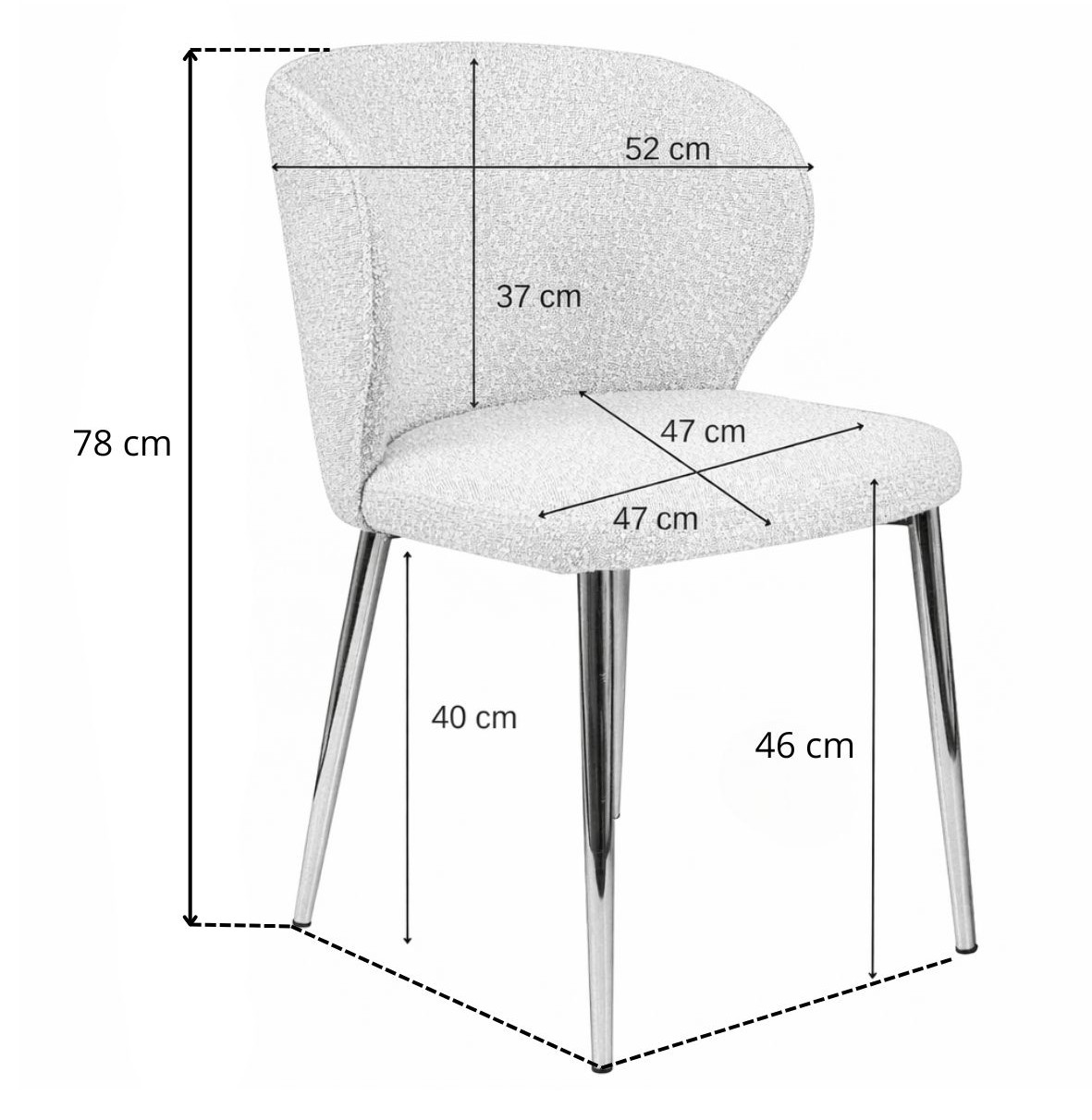 Židle je čalouněná příjemnou látkou typu boucle v krémové barvě.