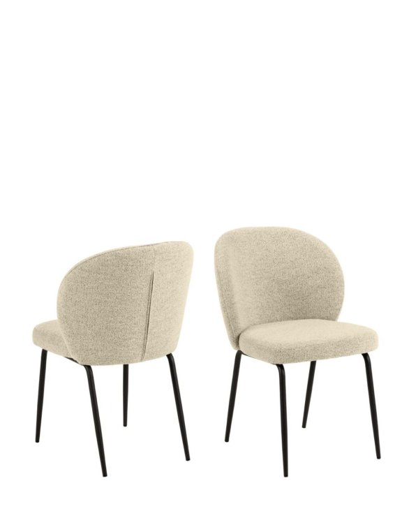 Jídelní židle Patricia značky Actona vnáší eleganci do každé jídelny díky své béžové, šedé a krémové bouclé čalounění s luxusní kroucenou strukturou.