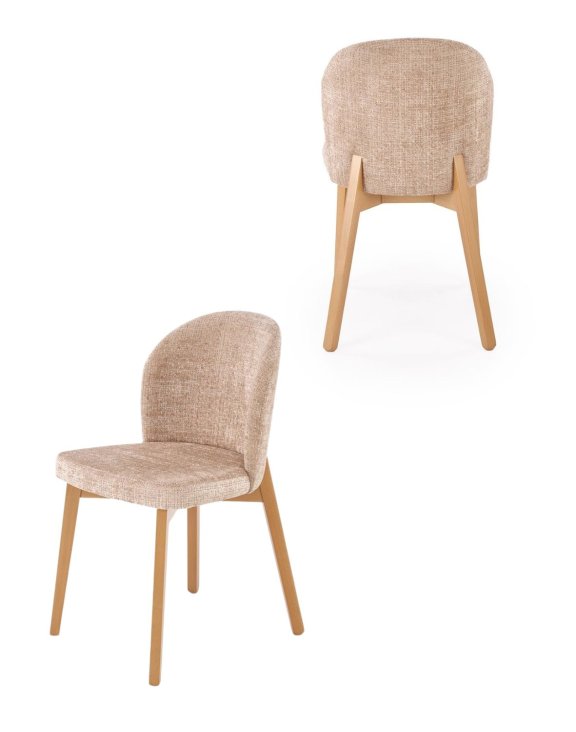 Jemná struktura potahu podtrhuje útulný charakter židle, zatímco pevná konstrukce z bukového dřeva v přírodní barvě dodává nábytku stabilitu a nadčasový vzhled.