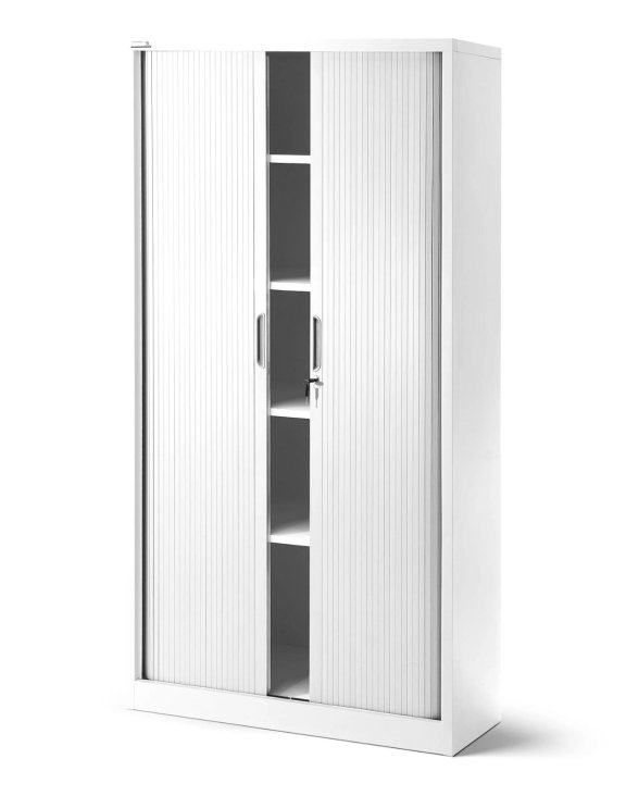 Kancelářská kovová skříň DAMIAN s posuvnými dveřmi ve formě rolety splňuje všechny klíčové vlastnosti produktů ve své kategorii.