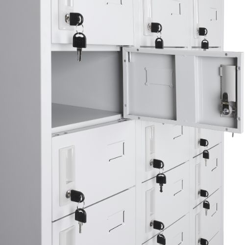 Každá přihrádka modelu Osaka je vybavena vačkovým zámkem na klíč a sadou 2 klíčů, což garantuje bezpečné uložení předmětů – jako jsou telefony, dokumenty, klíče nebo svačina.