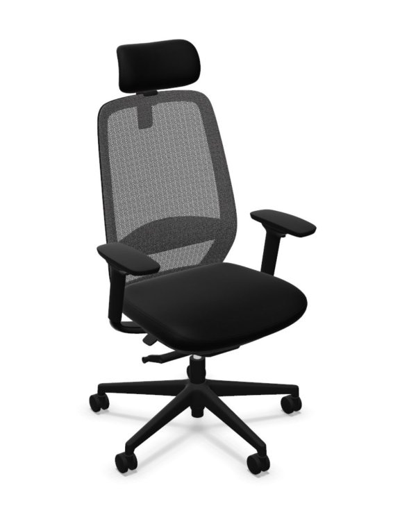 4D područky, plynový píst, pětiramenná základna z černého polyamidu a kolečky Ø 60 mm pro tvrdé povrchy vytvářejí pevnou a odolnou konstrukci.