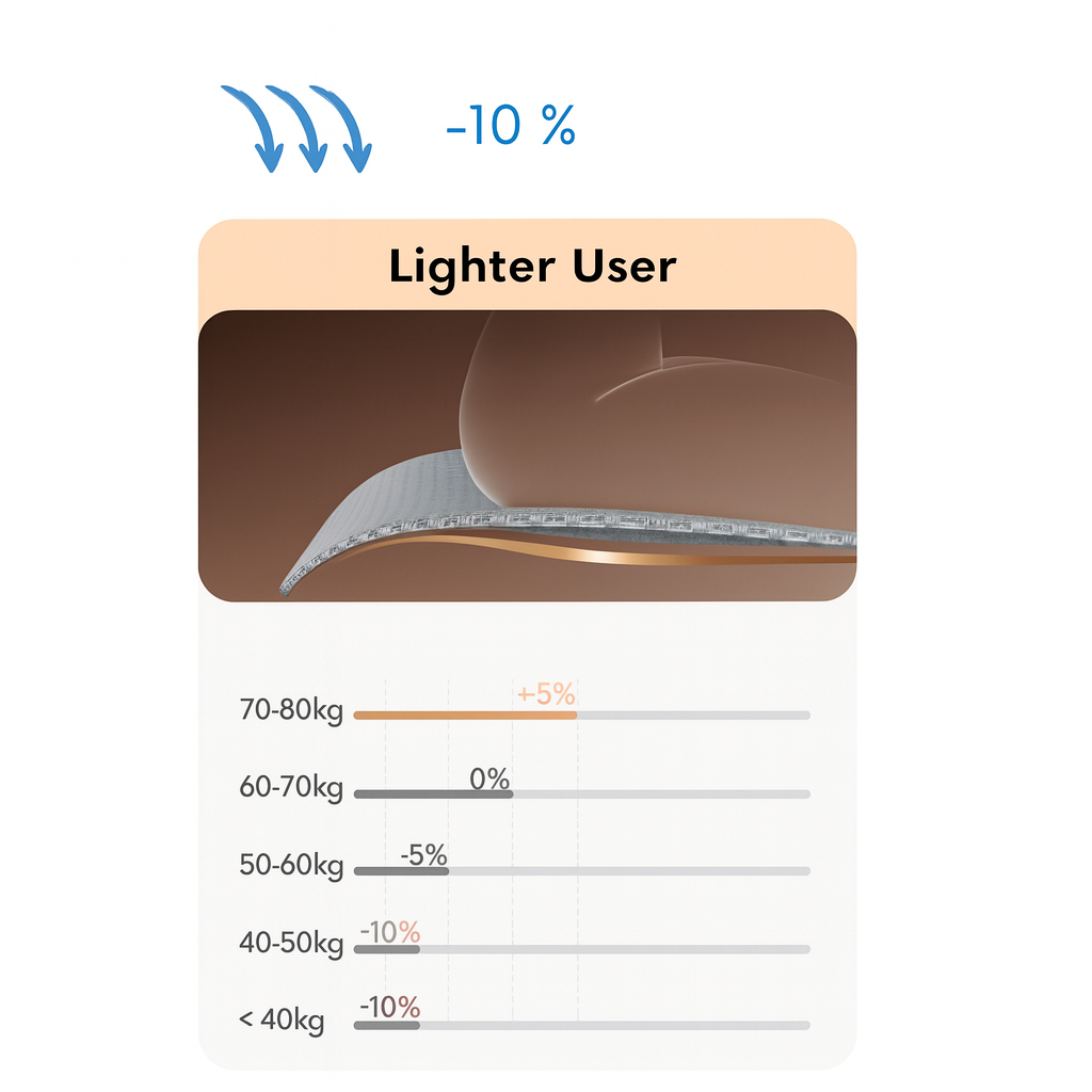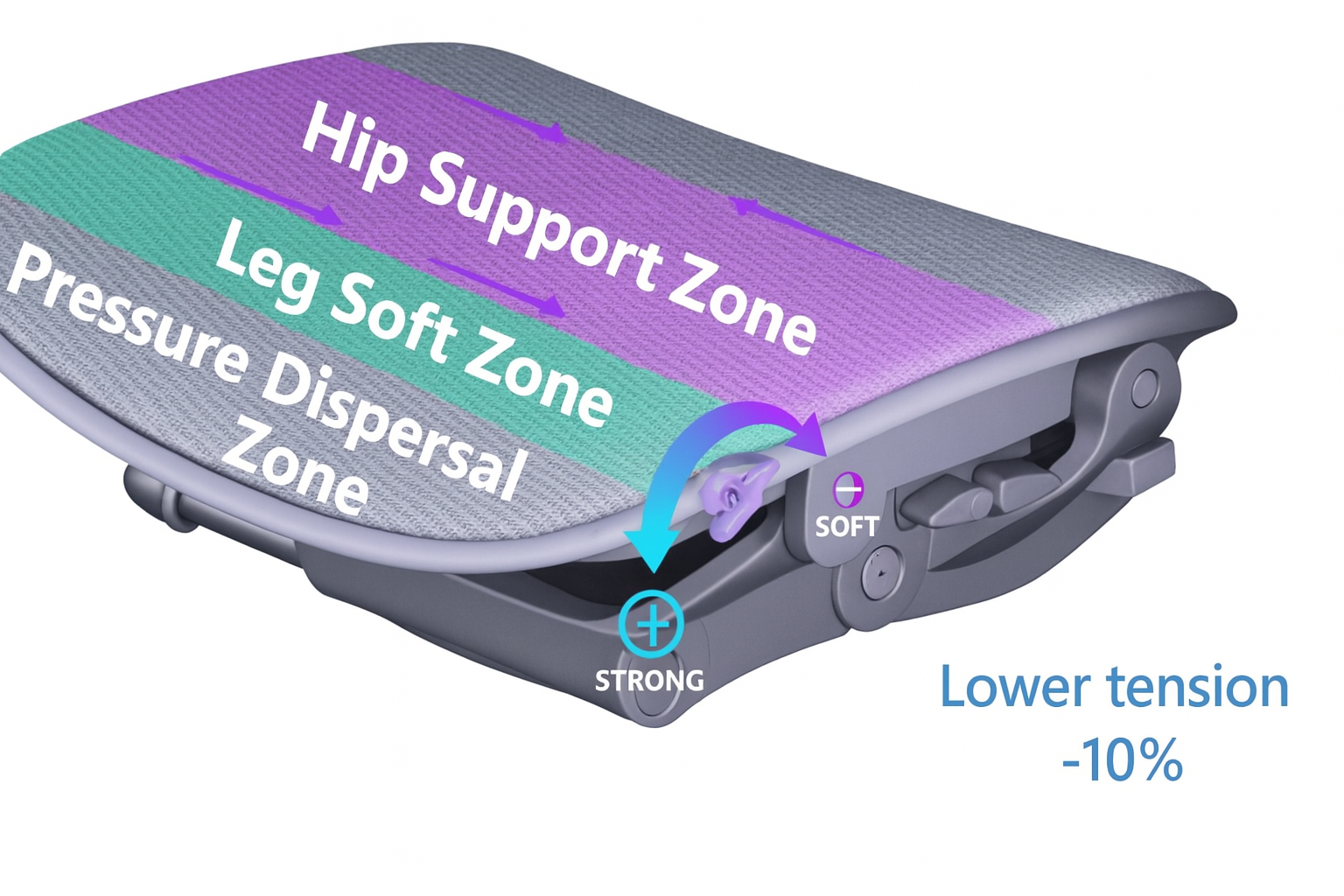 Síťovina má 10 zón s rozdílným napětím, aby se ideálně přizpůsobila tělu uživatele.