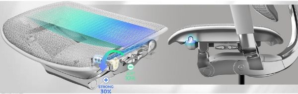 Síťovina opěradla má 5 zón s rozdílným napětím, aby se ideálně přizpůsobila tělu uživatele.