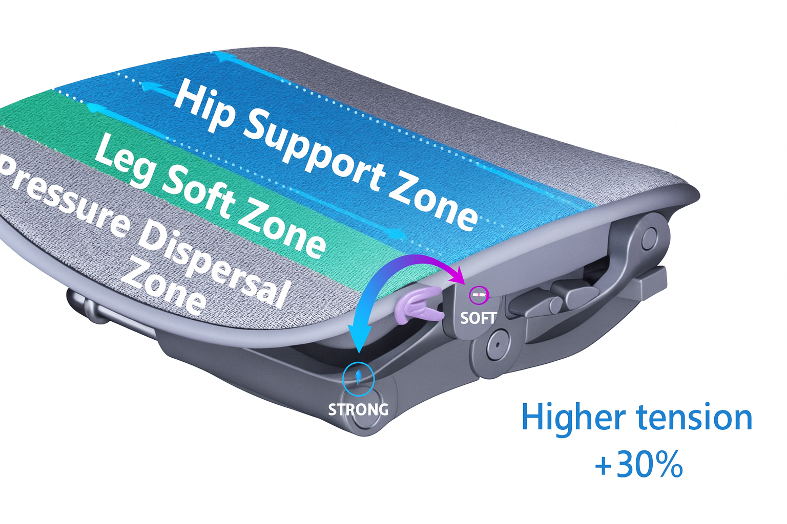 Toto nastavení napnutí umožňuje přizpůsobit pružnost sedáku hmotnosti uživatele.