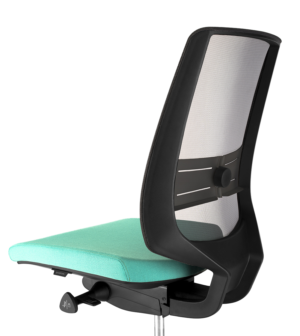 Při nezablokované poloze opěrák neustále kopíruje pohyb zad a poskytuje jim správnou oporu po celé délce.