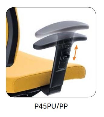 Područky s pohodlnými polyuretanovými nástavci (verze P45PU) jsou výškově nastavitelné v rozsahu 7 cm. Správné nastavení předloktí (v úhlu 90° vůči trupu) odlehčuje zádové svaly při dlouhodobé práci vsedě.
