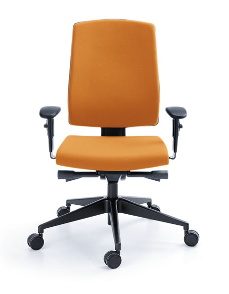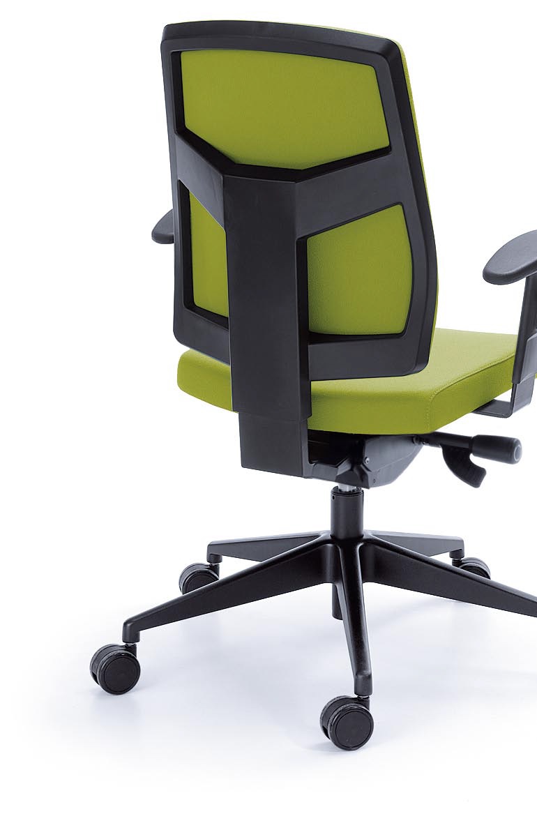 Moderní a ergonomická kancelářská židle z řady RAYA s oboustranně čalouněným profilovaným opěrákem.