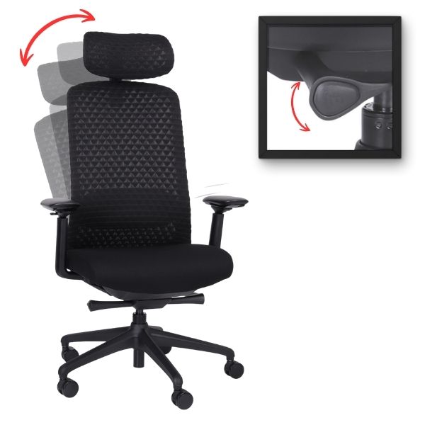 Díky nastavitelnému 2D hlavovému opěráku si můžete upravit jeho výšku i úhel náklonu, což zajišťuje optimální oporu krku a hlavy i při dlouhých hodinách práce.