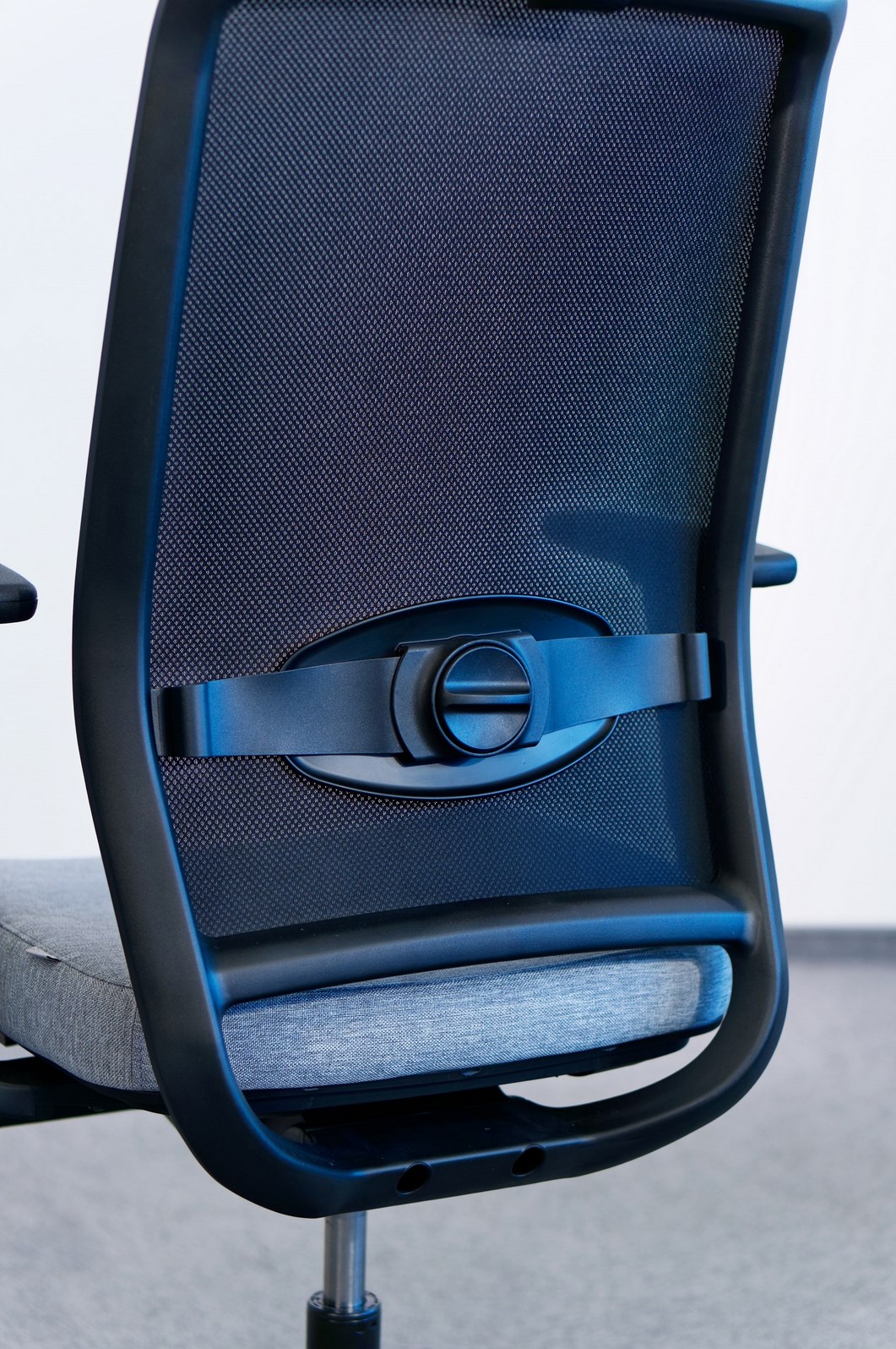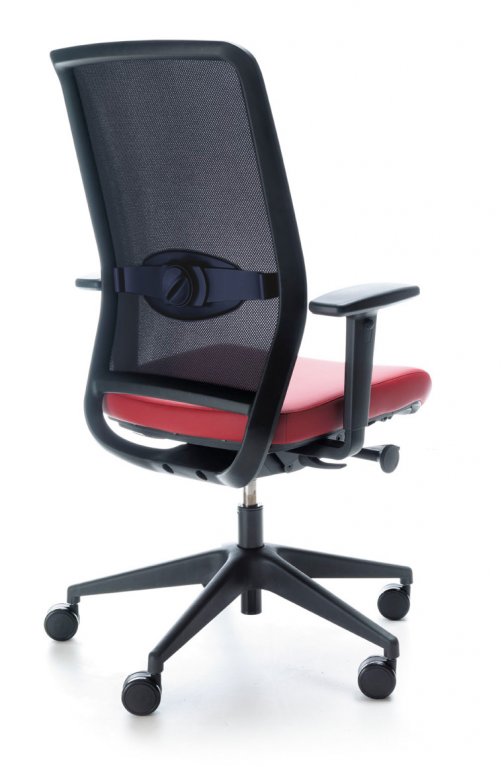 Opěradlo verze Veris Net 101SFL má dvojí regulaci bederní opěrky – výškovou i hloubkovou.