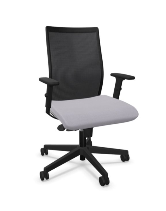 Ergonomické kancelářské křeslo série Intrata s výrazně profilovaným opěradlem ze síťoviny a čalouněným sedákem a aktivním mechanismem,