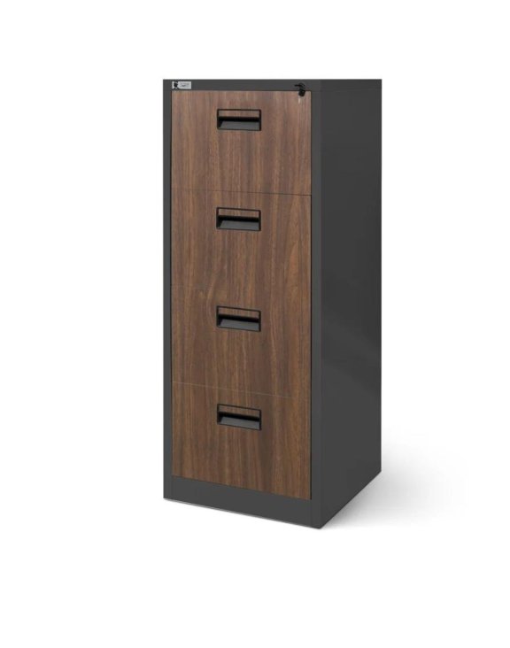 Antracitovo-ořechová kartotéková skříň Sara se čtyřmi zásuvkami je kompaktní kus nábytku, který je nenahraditelný v každé kanceláři, úřadu, lékařské ordinaci a všude tam, kde je potřeba uchovávat dokumenty.