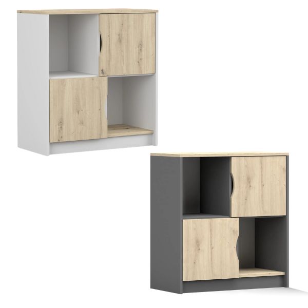 Nábytek má dvě uzavíratelné skříňky a dvě otevřené přihrádky, které umožňují pohodlné uložení knih, sešitů, dekorací a drobností.