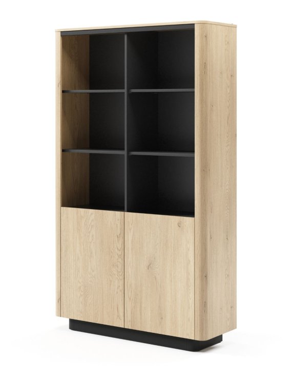 TV stolek Torro E 200 cm – elegantní kus nábytku ve stylu japandi, který spojuje přírodní dekor dub Cremona s černými akcenty. Vsaďte na funkčnost a styl – vyberte si TV stolek Torro E do svého obývacího pokoje!