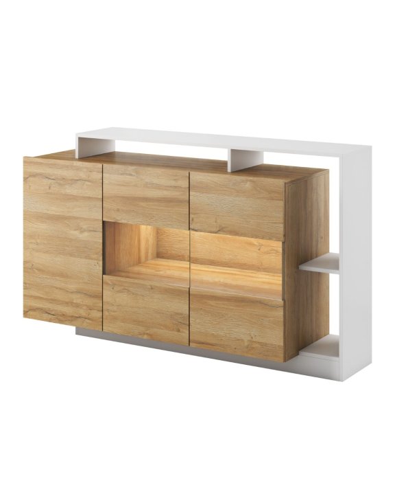 Moderní komoda s prosklením a LED osvětlením Alva 155 cm