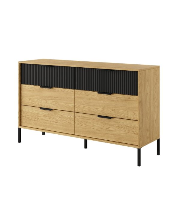 Moderní sestava Baltic spojuje teplý odstín dubu s černými akcenty. Styl, pohodlí a evropská kvalita v elegantním ložnicovém kompletu.
