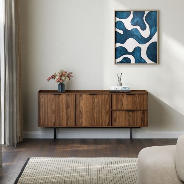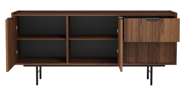- Nadčasový design – minimalistická forma, výrazná kresba dřeva a kovové detaily zajišťují, že se komoda hodí jak do moderních, tak i klasických interiérů.
