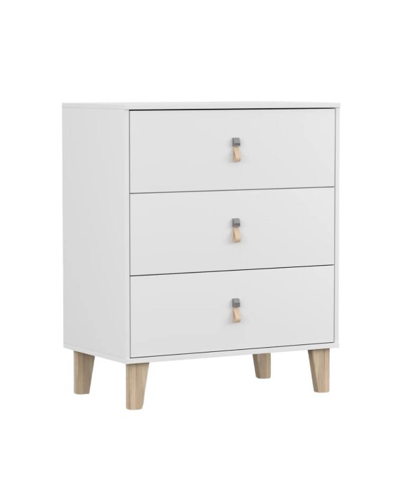 | Komoda Figo 3S – bílá s dřevěnými nohami a koženými úchyty | 3505 Kč |