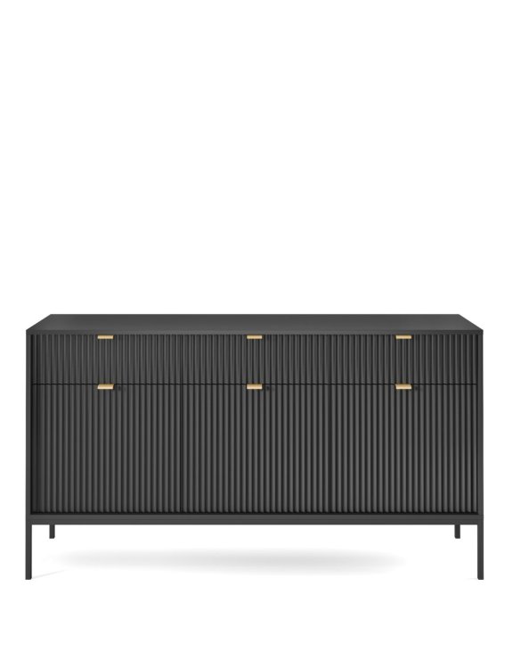Komoda Nova černá se zásuvkami (KSZ154) značky Piaski je elegantní a funkční nábytek, který se skvěle hodí do obývacího pokoje nebo ložnice.